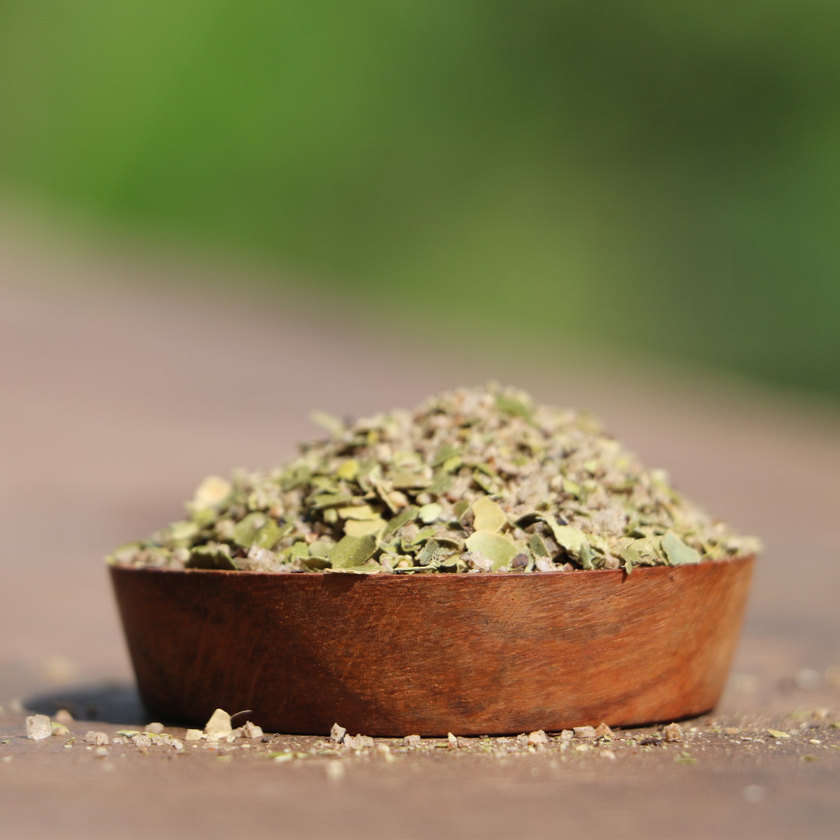 Eine gebrauchsfertige Mischung aus Kampot Meersalz, schwarzem Pfeffer aus Kampot und Kaffernlimettenblatt aus unserem Garten. Sie verleihen Ihren Gerichten einen zitronigen Geschmack.